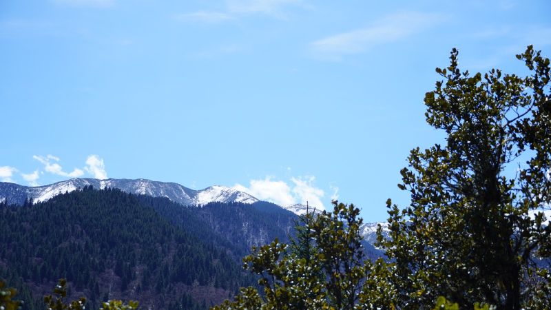 透过嫩绿的草叶儿依然能预见它碧空如洗的静美,草丛中点缀着各色草甸小野花,在春风中娇小且倔强。风徐徐而来,远处的雪山渐渐显露身姿,层层绿色在缥缈的云雾中忽明忽暗,云雾从山涧升腾而起或从山尖倾泻散漫开来,宛如仙境,美到窒息。