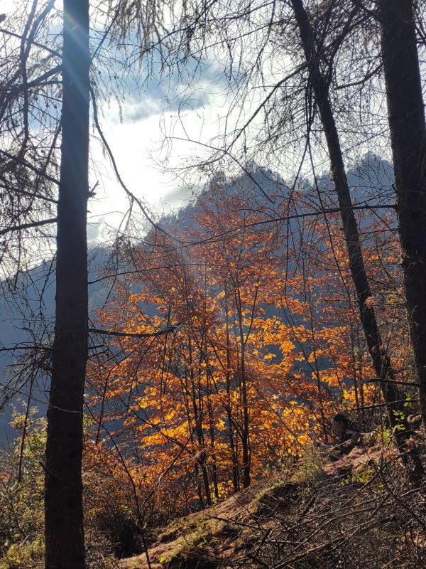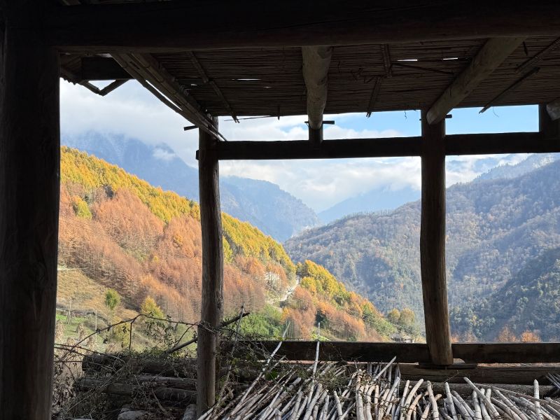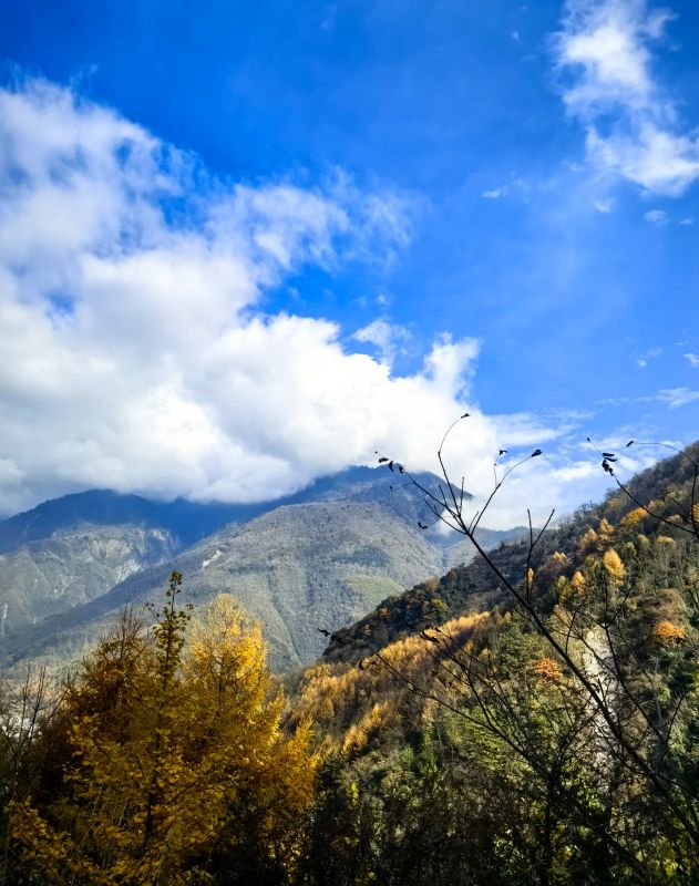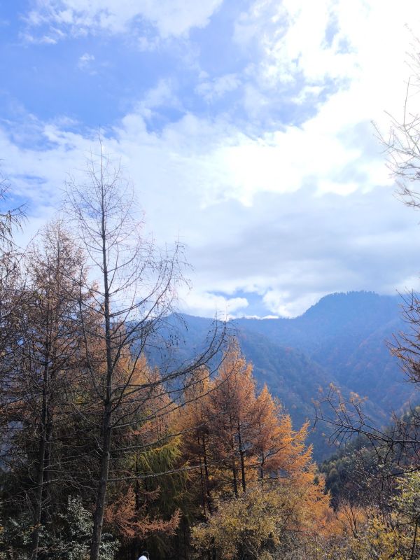 卧龙老鸦山位于耿达乡境内,老鸦山秋季以黄杉为主,登上空旷之地一眼望去,漫山黄杉尽收眼底,与山下的绿色有着清晰的分界线,带来强烈的视觉效果。