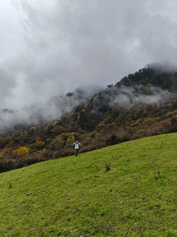 老鸦山的路下雨后确实难走,但你走到三个草甸子,看到周边云雾绕山,彩林美景,觉得值得。导游很负责,一直拉着小朋友。