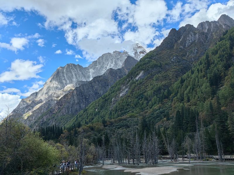 ③ 远处雪山耸立,沟内处处是景,双桥沟、长坪沟景色怡人;