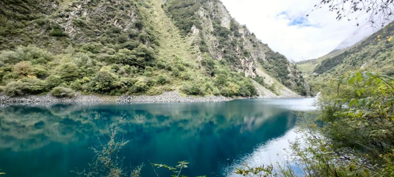 蓝墨水一般的墨海、海拔最高的长海、溢满了神秘传说的白石海、五彩斑斓的爱情海、童话世界般的上白腊海、小家碧玉般的下白腊海、拥有不对称美的芳草海……它们如同宝石散落在山间,散发着自己的光彩,澄碧、闪亮。