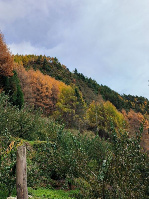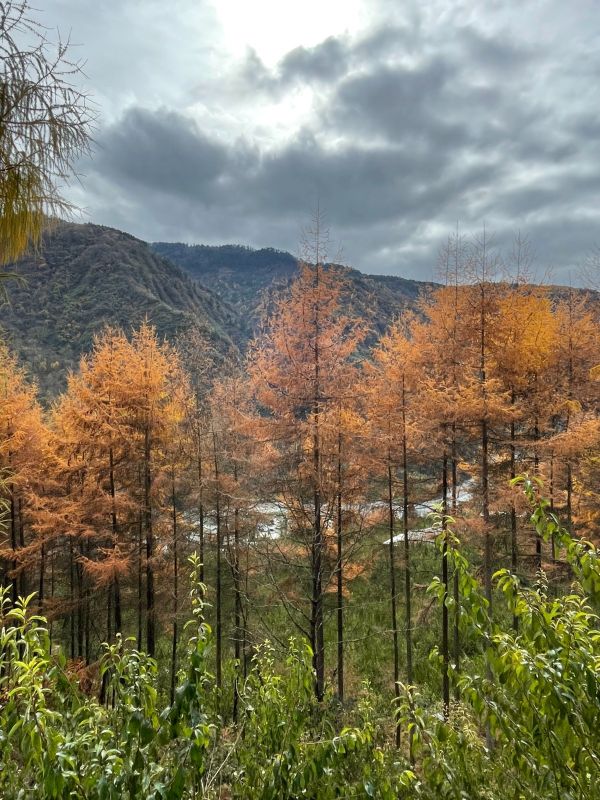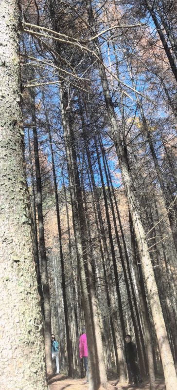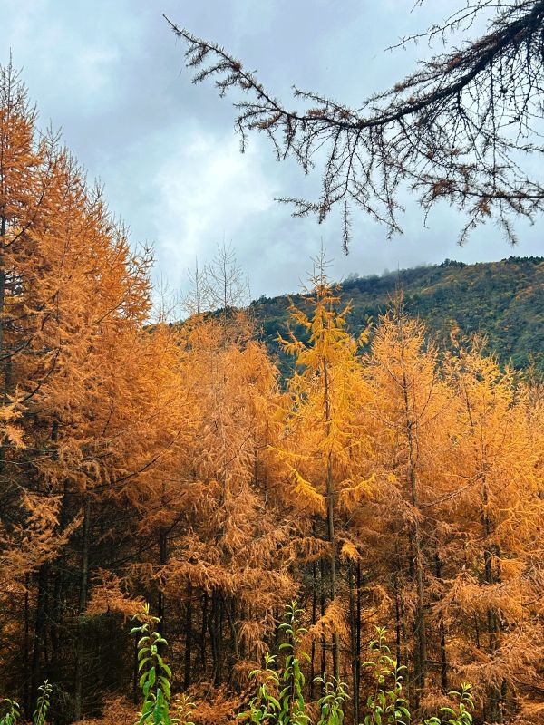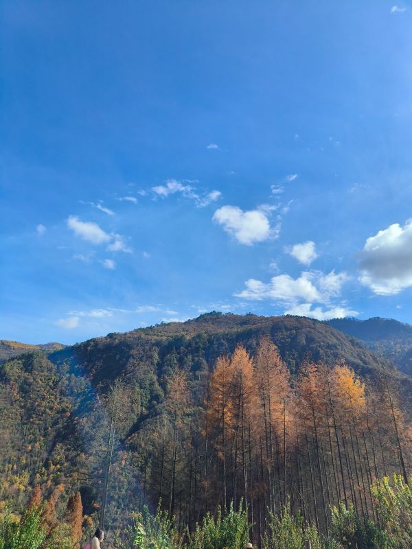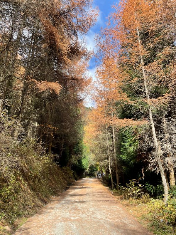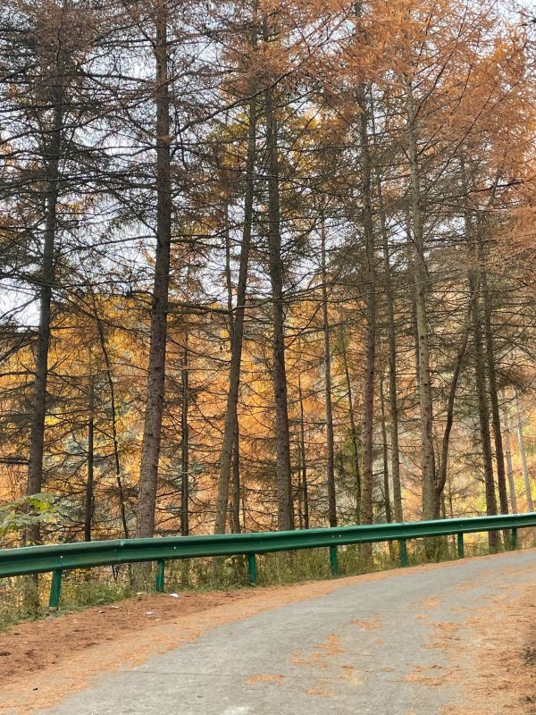 早上集合点准时出发,车上领队讲解行程安排及注意事项,发放小奖品,一路欢歌笑语,预计10:40到达下车点,简单活动身体后,跟随领队开始徒步,一路拾阶而上,穿梭在秋的油画里,欣赏色彩的丰富,远看云雾缭绕;沿途最具特点的就是成片的高大的松针林,在公路两边,随手一拍,都美的惊艳!半山腰上有一个喇嘛寺,也是我们此行的终点位置,大家拿出自带路餐分享,预计下午14:30左右开始原路返回,按照规定时间集合返程,路上大家相互分享照片,结束美好的一天。