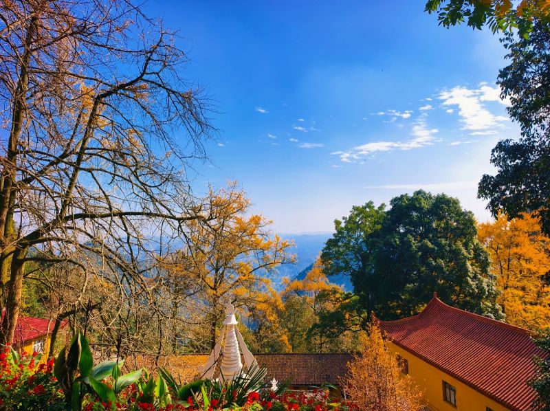 1.远离城市喧嚣,在周末阳光明媚的早晨,一起去大邑县白岩寺寻找秋季银杏的那份美丽。