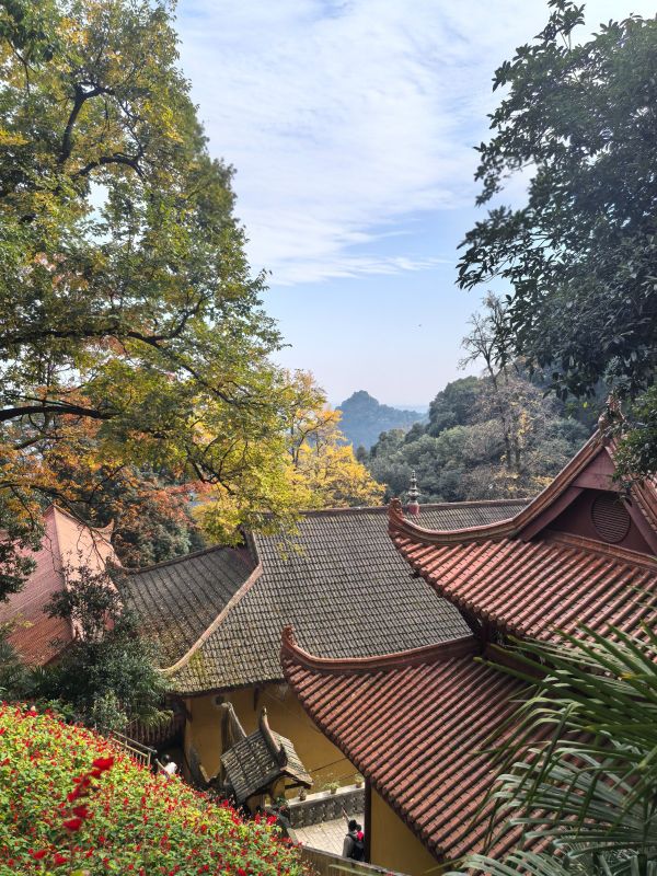 早上集合点准时出发,车上领队讲解行程安排及注意事项。大约两个小时左右到达大邑县白岩寺景区,中午在景区内野餐,环境不错。深秋的白岩寺,那片片美丽如折扇般的银杏叶渐渐步入它辉煌的季节。青山间,白岩寺依山而建,庙宇楼阁延绵而上,错落有致,需步行而上。从小路上山大约3公里左右。在领队的带领下一路沿着栈道向上前行。山林中的银杏树颜色也开始泛黄,靠近白岩寺有“九株同根”的参天古银杏树。寺庙黄墙红瓦,在金黄银杏叶的笼罩下显得更加耀眼夺目,景色甚是优美。下午4点左右大家上车返回成都。意犹未尽,含泪吻别。