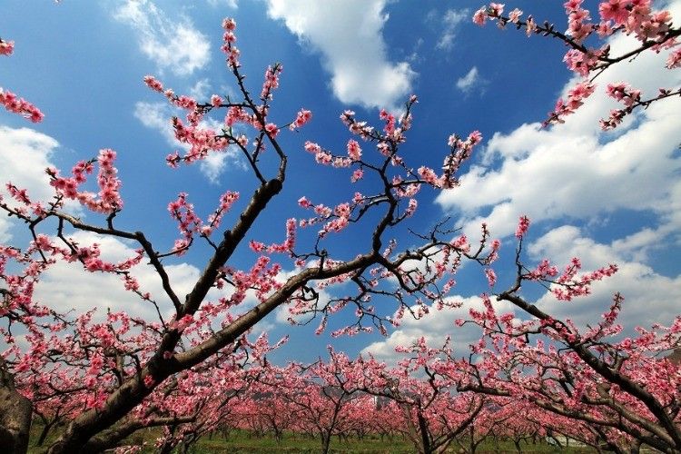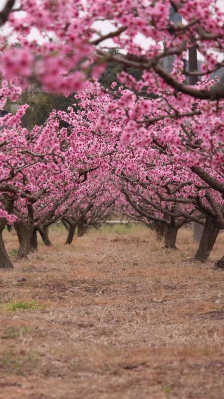桃花遍地,繁花似锦,游人穿行于桃林之间