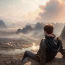 2、遥望高高的美丽神山,云游中有一条通天的路,置身于一片星空下,遥望一片云海。