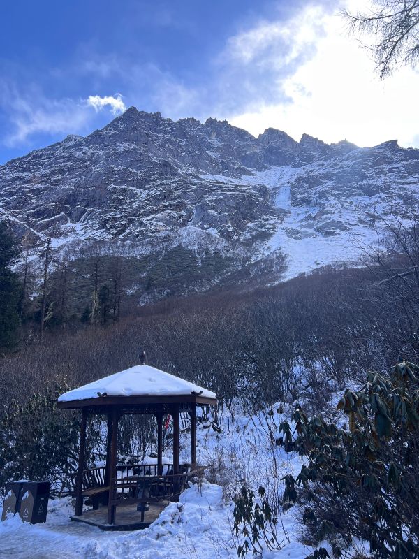早上在指定地点出发,经都江堰、桃坪羌寨,到达毕棚沟,冬日的毕棚沟白雪皑皑,置身其中,你会情不自禁的被这些美不胜收的风景陶醉而无法自拔。一丝雪花不经意的飘过,扑面而来的是阵阵沁人心脾的冬雪的味道,萦绕在潺潺流水声的山间,让人如梦如幻,如诗如画,如痴如醉。不远处就是雄伟壮丽的雪山银峰,加上雪白的枫树在金黄色的阳光的映照下,简直美得一塌糊涂。从山上到山下,在海拔近1000米的跨度上,形成了山下以“白”为主色,山尖以“蓝天雪山”为主色的美丽冬景,白的雪、蓝的天、碧的池共同浸染出一片迷人的画卷。下午17:20景区门口集合(因交通情况、人流等因素影响,具体时间以领队实际安排为准),返回成都。 PS:景区可选择电瓶车往返,可徒步往返。建议大家做电瓶车上山,徒步下山。