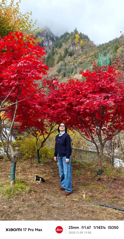 秋天真的太美了,那天去刚好有太阳,后面的雪山