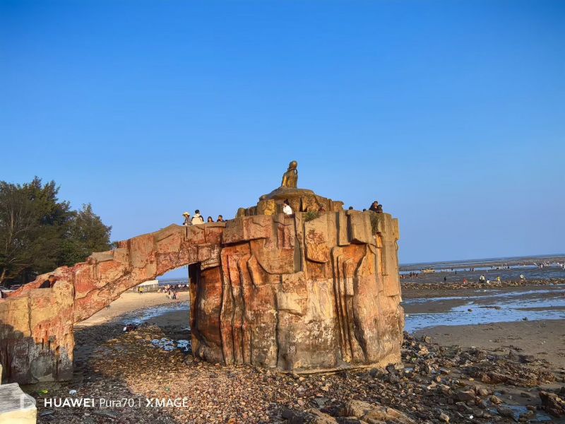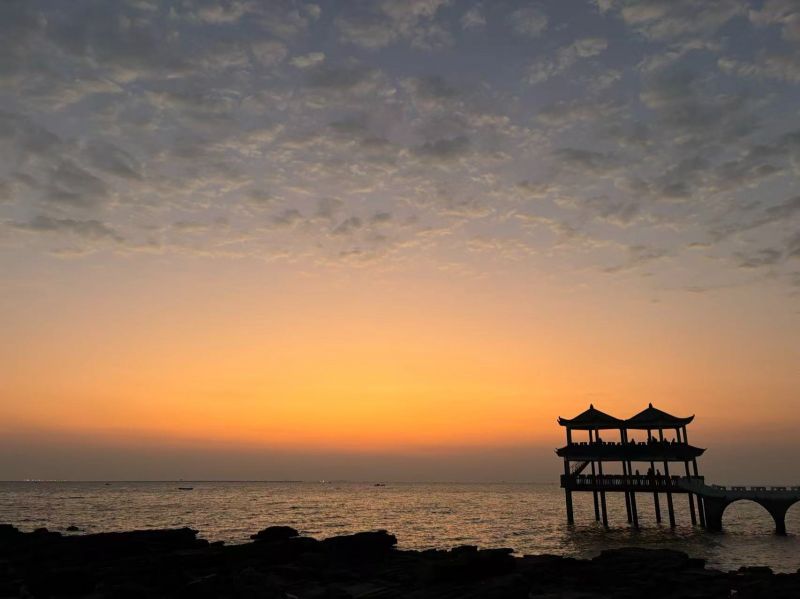 随后从住处前往到保存较为原始的中国唯一的倾覆性火山遗迹——怪石滩游玩;怪石滩是粤西著名的火山地质风景区,整个海湾就是当年的火山口!一边是原始森林,一边是湛蓝的大海!加上形状千奇百怪的褚红色的火山岩,远看像是古城墙,走近看却是层层叠叠的高温熔岩,与邻近的大海相映衬,景色令人拍岸叫绝!之后到达金滩安排住宿(万尾岛),天气好在金滩守候一场浪漫日落,晚上海边烧烤宵夜。