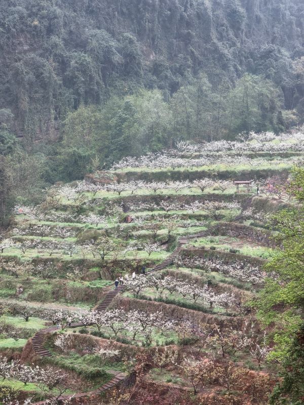 非常轻松愉快的一天旅行,就是天公不太做美,一直下着细雨,景色很怡人,看到了白的红的黄色的花,还有美美的梯田,幸福村很干净,适合举家出游,也有农家乐,味道也还不错,去的有点迟,没有多少菜菜可选。下午看到了彩色的油菜花田,美的很。值得嘉奖的是我们的领队月亮,温柔大方,亲切可人,还给大家准备了明天三八节的贺卡,看得出是个很用心的妹妹。