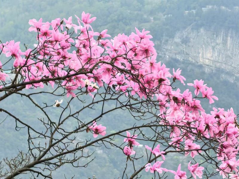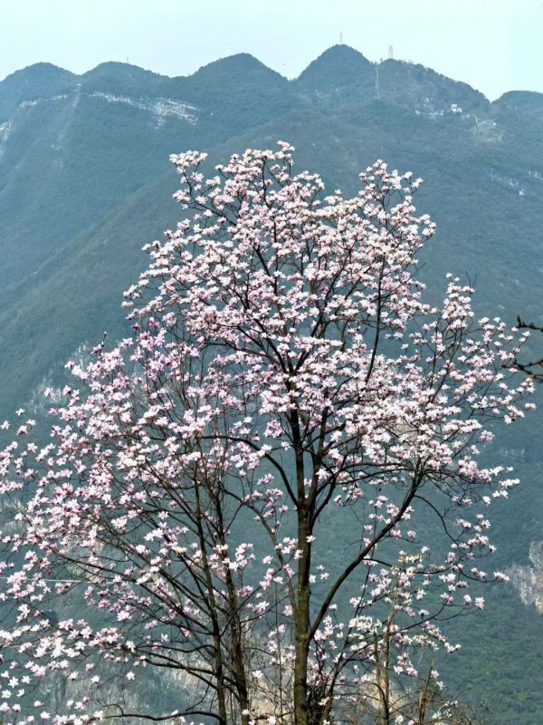 每年3月末到4月,经过了整整一个冬天的酝酿之后,生长在这里的辛夷花在春雨轻声呼唤下竞相怒放,数万株辛夷花从山脚一路盛开至山顶,其壮观场面堪比日本樱花。
