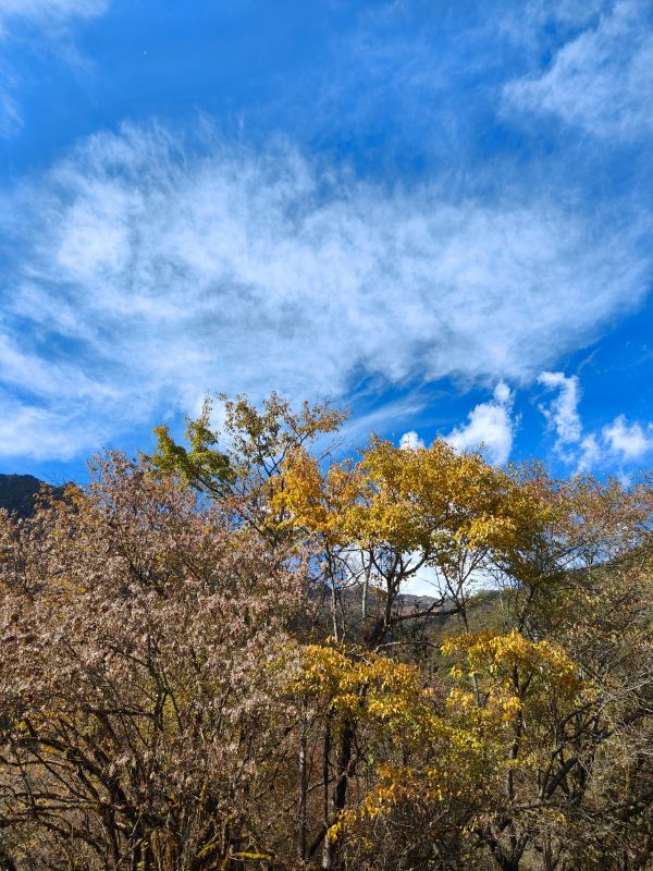 早上集合点准时出发,车上领队讲解行程安排及注意事项,发放小奖品,一路欢歌笑语,预计10:40到达下车点,简单活动身体后,跟随领队开始徒步,一路拾阶而上,穿梭在秋的油画里面,欣赏色彩的丰富,远看云雾缭绕;中午在坐在金黄的高山草甸上,就着淡淡的牛屎清香,享用自带豪华路餐,在蓝天下、白云里继续放飞自己,拍摄美照,下午适时返回乘坐中转车下山,预计下午16:30左右集合返程,大家相互分享照片,结束愉快的一天