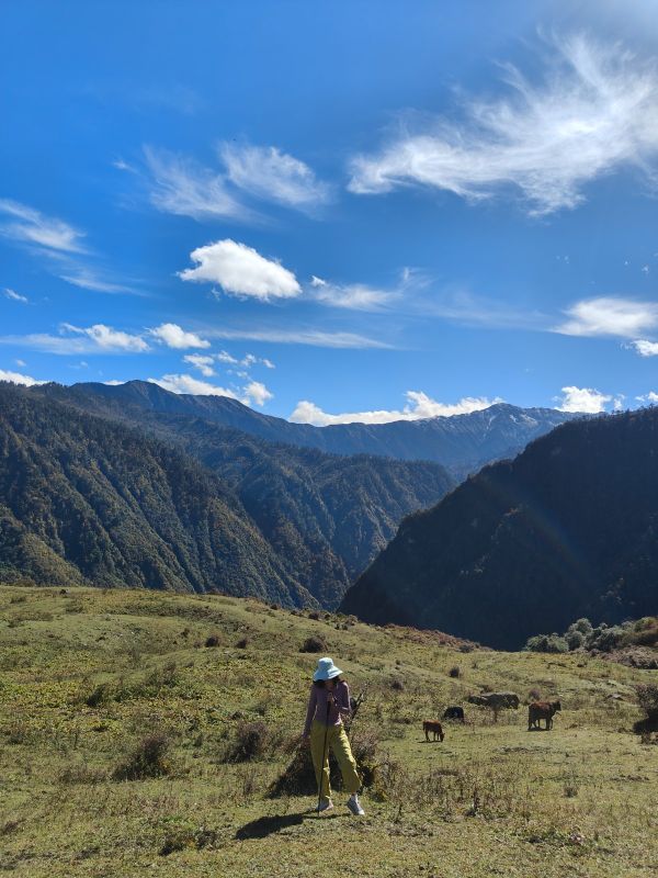 今天真是好运气,蓝天白云彩林牧场雪山,真的很美,领队阿力忙着给我们拍美照,情绪价值给得够够的。谢谢