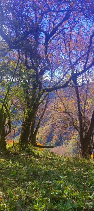 秋季的卓西牧场就像是上帝打翻了调色盘浸染的五彩画卷,蔚蓝如洗的天空上飘着大朵大朵的像是棉花糖一样的云朵,漫山都是充满诗意的彩林,让人流连忘返。