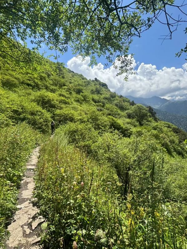 带孩子一起徒步巴朗山,满山的绿色,艳阳高照,空气好,感受大自然的美妙