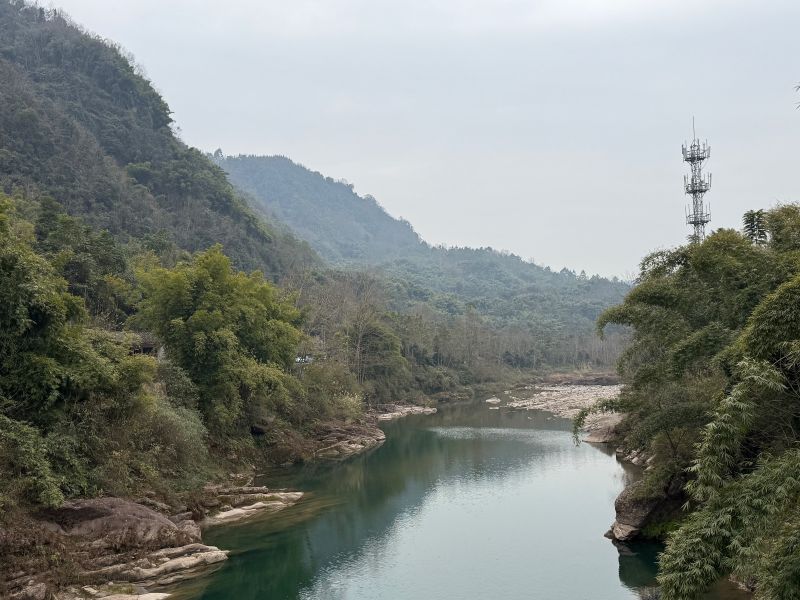 位于药师岩下方的䢺江河,从西岭雪山以及周边山体汇集自此,河水不深不湍急却异常清澈,鱼虾可见,到了夏天,戏水撒欢的绝佳宝地。