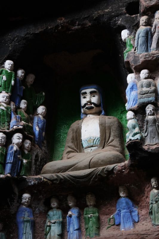 清风拂过,在空气中卷起涟漪,穿行于一草一木,石径蜿蜒,美得极致,似乎只有最初的童真和心灵在行走。经过将近一个小时的跋涉后,药师岩石窟终于出现在了眼前。首先映入眼帘的是在悬崖上镌刻的“飞凤山”三个浑厚的大字,药师岩的石刻塑像群,在半山腰的峭壁之上,密密麻麻的摩崖雕像占据了整个山壁,身临其中,一种威严敬畏的感觉油然而生。