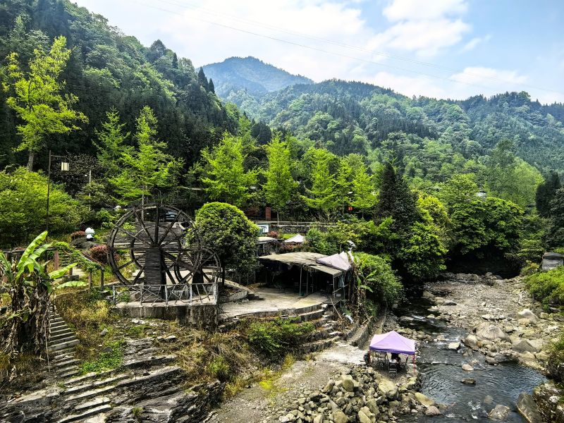 走进红峡谷,街道两旁种满了桂花树,一到秋天,桂花香就萦绕着这里的川西民居建筑,右手还有一座高山伫立,自古就流传着“两山夹一沟,有水难行舟”的说法。