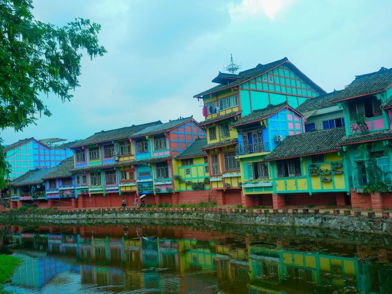 色彩冲击,大同镇的历史,人文和地理景观十分有名,而如今更为它的名声增添风采的,是它彩色的外衣。中国的最美彩色小镇——大同镇。