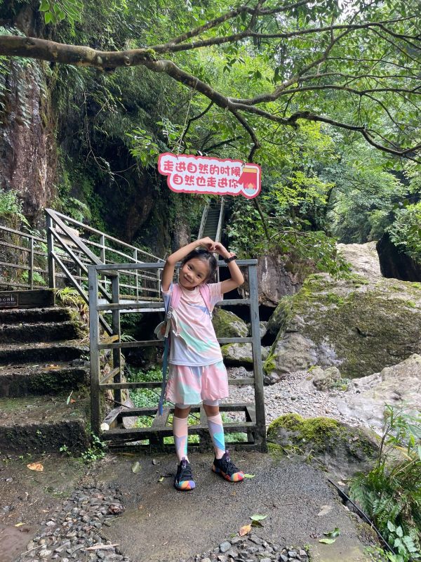 进入景区后,沿着溪涧走,山风徐来,空气中飘散着一丝幽幽香气,淡淡的,不知道是什么花, 道路边时而是小桥流水,时而流泉飞瀑,走走停停,听山谷鸟鸣,见树苔青翠。想到负氧离子,这里的指数一定好!到!爆!表!