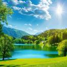 深红的叶,碧绿的湖,湛蓝的天,纯白的雪