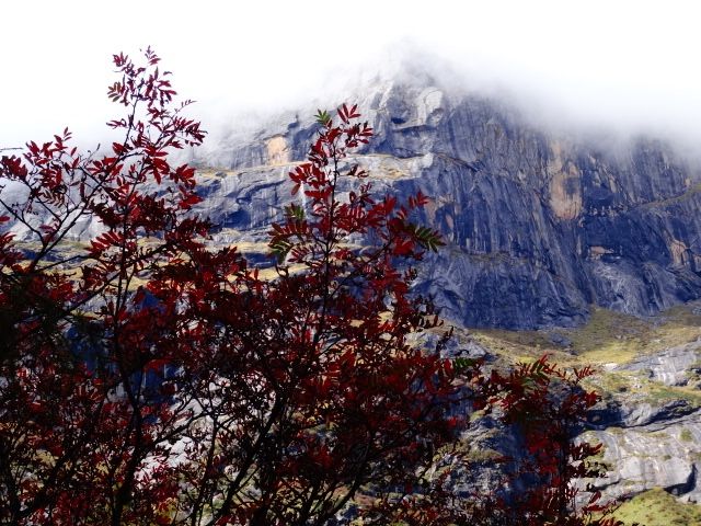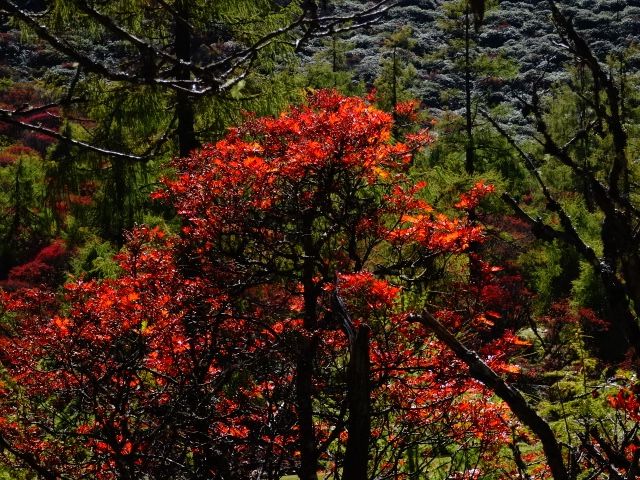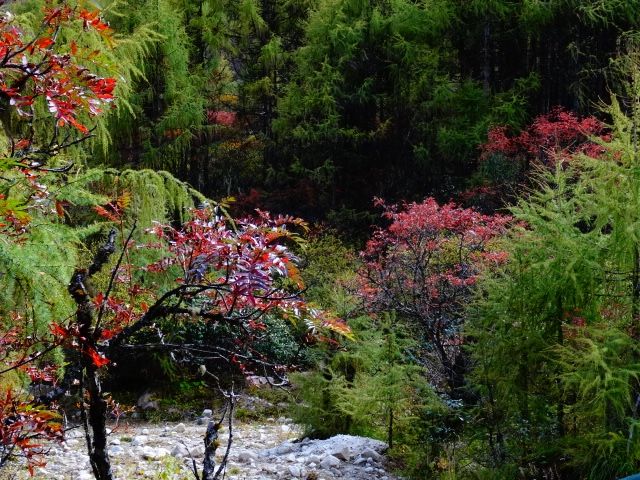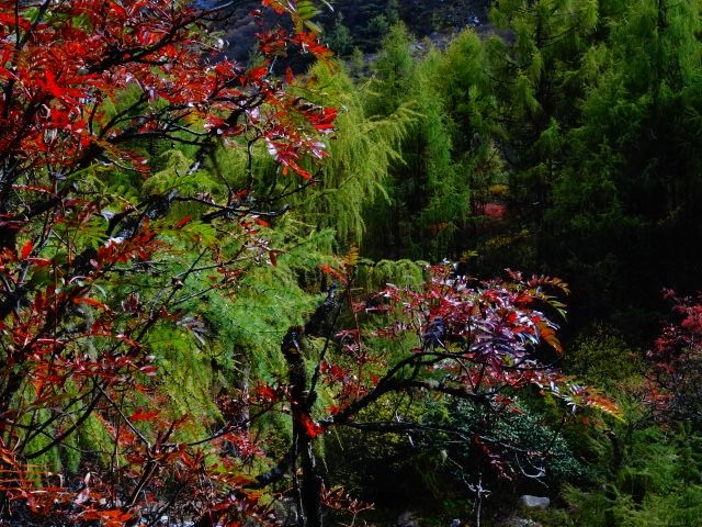 ① 彩林面积大,持续时间长,有着“四姑娘山的美丽背影”、“东方阿尔卑斯”、“国内红叶观赏圣地”等美誉;