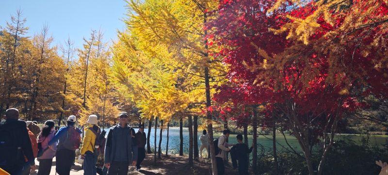 今天天气太好了,阳光明媚白雪皑皑,彩林五彩斑斓,司机师傅和领队小召尽心尽力好好,难忘的一天。