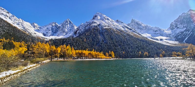 ① 彩林面积大,持续时间长,有着“四姑娘山的美丽背影”、“东方阿尔卑斯”、“国内红叶观赏圣地”等美誉;
