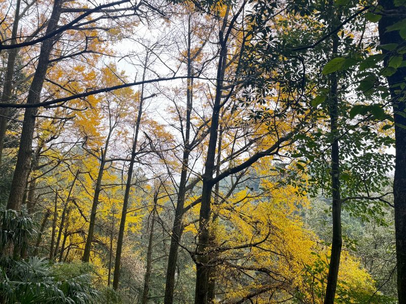 入秋,成都周边的银杏大都散落之际,葛仙山的银杏却初露头角。在经历过几番淅淅沥沥的小雨之后,葛仙山的银杏越发黄的快,满山遍野正在等待秋、冬的接替..