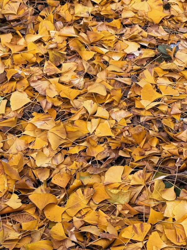 此时的葛仙山古银杏林尽染秋色,叶落翩翩飞舞,铺上了厚厚的一层地毯。