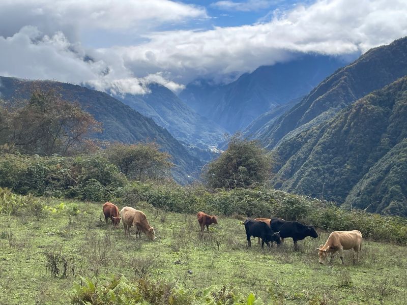 领队小苏超赞,景色很美,下周彩林应该会更好看。下了雨路况不好,有的路段又滑又陡,一定要带登山杖,穿徒步鞋。当地向导大爷不愧是我大爷,77岁高龄背着双手轻轻松松把我拉爆。