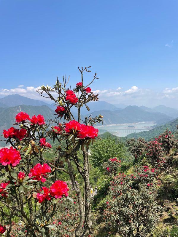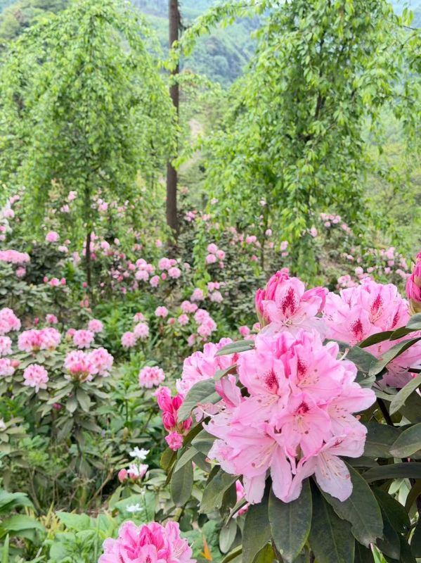 这一朵朵鲜艳的杜鹃花簇拥着,