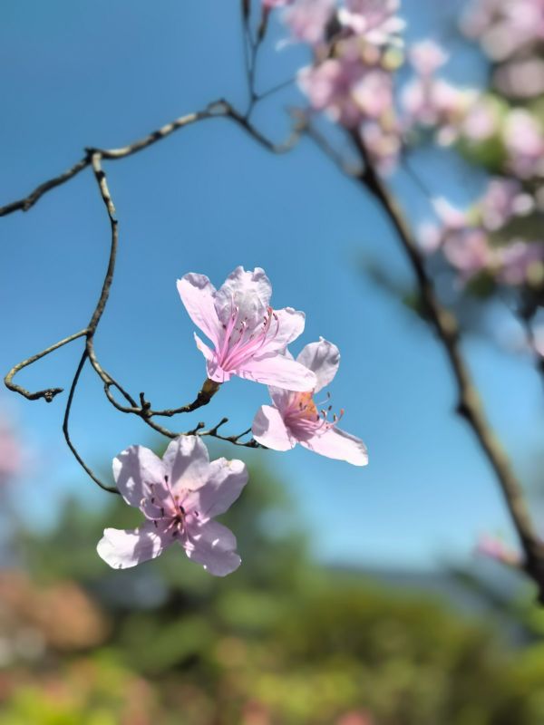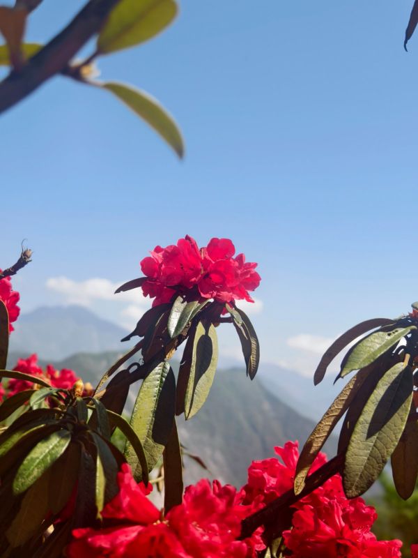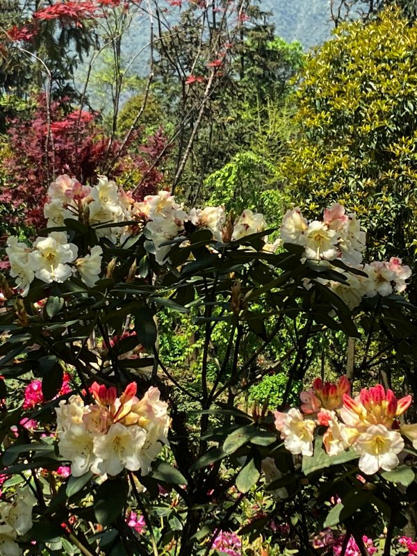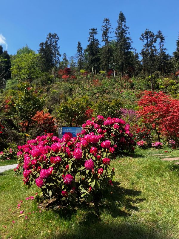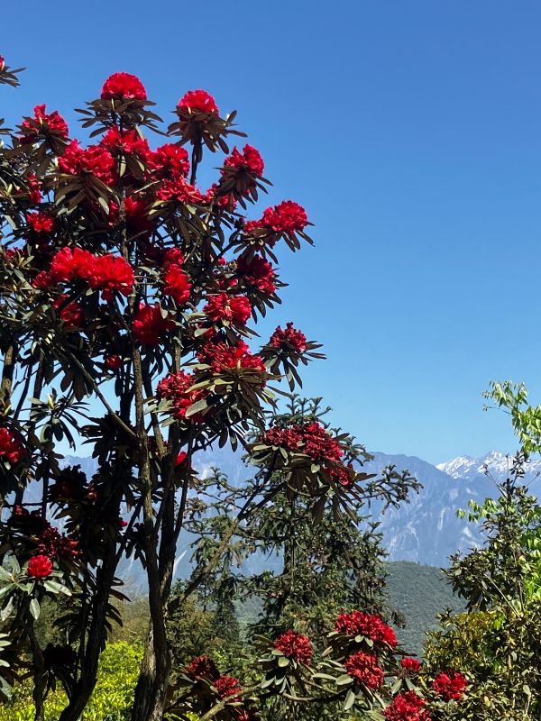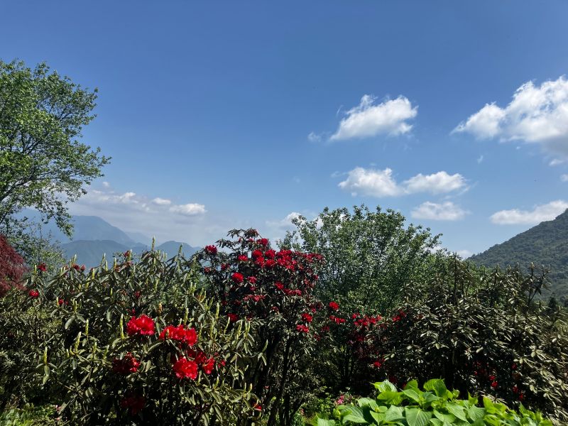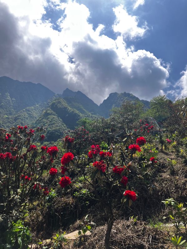一到春天,无忧谷沉睡了一个冬季的植物就开始苏醒了,高山杜鹃竞相绽放,还有一树一树的烂漫山花,它们间插在翠绿的山间,云雾缭绕,远处的雪山时隐时现,如诗如画,似仙境般美妙。