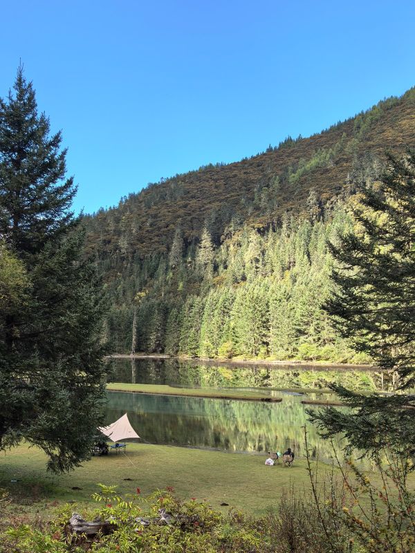 其中月亮湖,是一个藏匿在深山中的世外静湖。寂静的山林,绿色的海子,即便是负重行走也觉得惬意怡人。