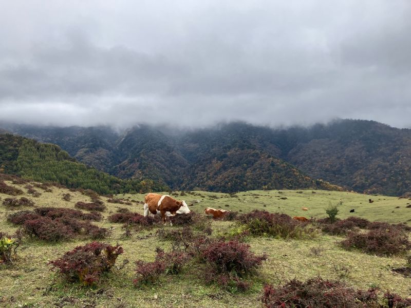 云中牧场位于卧龙自然保护区,周边生活着大量的国家珍惜野生动、植物,四周群山环绕,草甸视野开阔,其中蓝天、白云、森林、牦牛……组成自然和谐的场景,令人忍不住坐下来享受片刻的美好宁静。