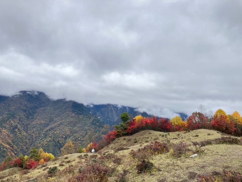 路线比较轻松,但是想复杂也可以一直往山上走。今天运气还不错,没有下雨,彩林正好。领队阿枫也很不错,指挥我们各自造型拍照