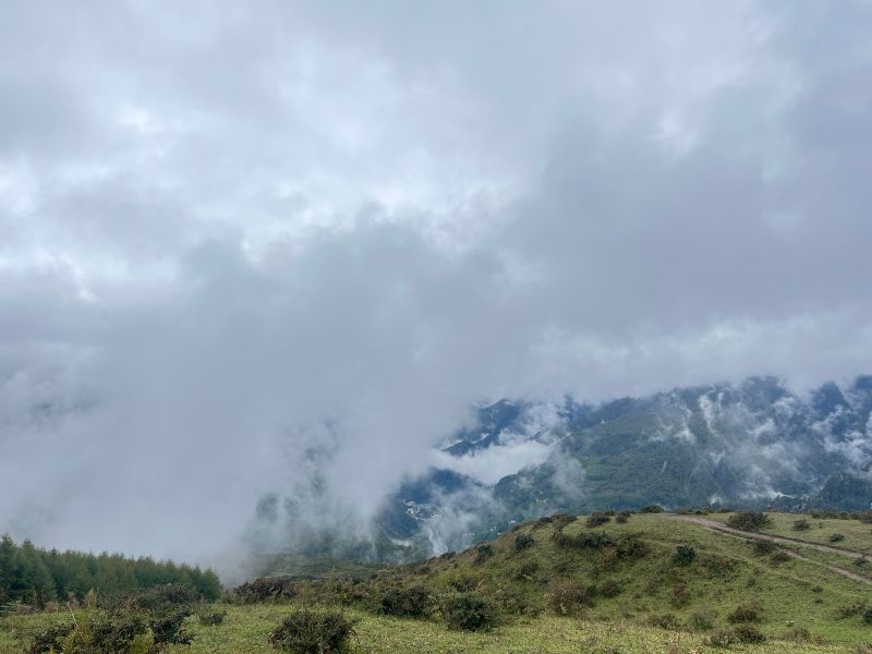 这条线和甘海子在一起,隔壁山头的草甸,山顶有云雾,树林只有个别黄了,坡度比较陡需要穿好走的鞋。导游也很负责,老用户了