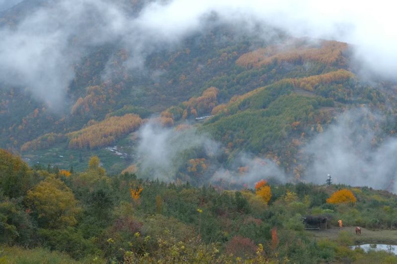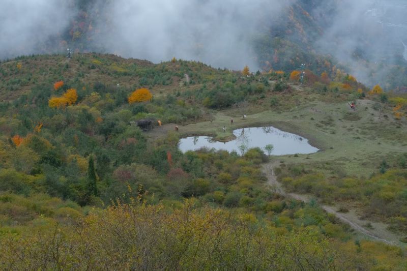 云中牧场位于卧龙自然保护区,周边生活着大量的国家珍惜野生动、植物,四周群山环绕,草甸视野开阔,其中蓝天、白云、森林、牦牛……组成自然和谐的场景,令人忍不住坐下来享受片刻的美好宁静。