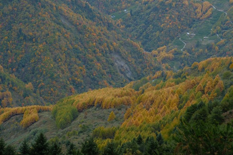 路线比较轻松,但是想复杂也可以一直往山上走。今天运气还不错,没有下雨,彩林正好。领队阿枫也很不错,指挥我们各自造型拍照