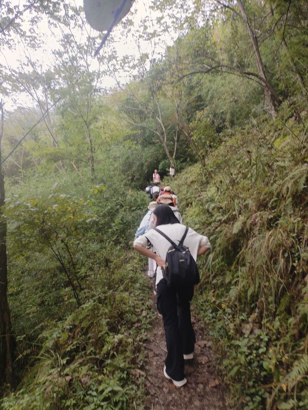 我第一次走c+,开始还怕自己走不完,但是路上和伙伴们聊天也是很快就到了,今天大太阳,温度感觉和成都差不多。基本都是在树林里,所以不怎么晒,但还是要做好防晒,而且最好也戴个帽子,有的树枝什么的比较低会挂头发。雪糕领队很好