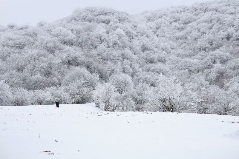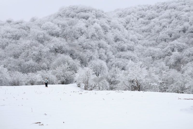 九顶山雪花纷飞降落在山间