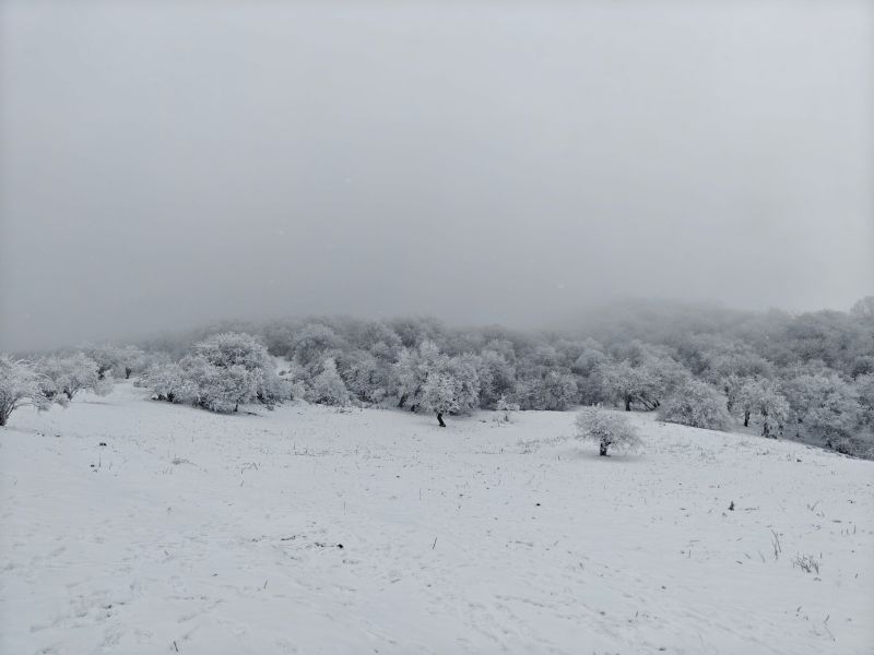 一片白茫茫的山野上
