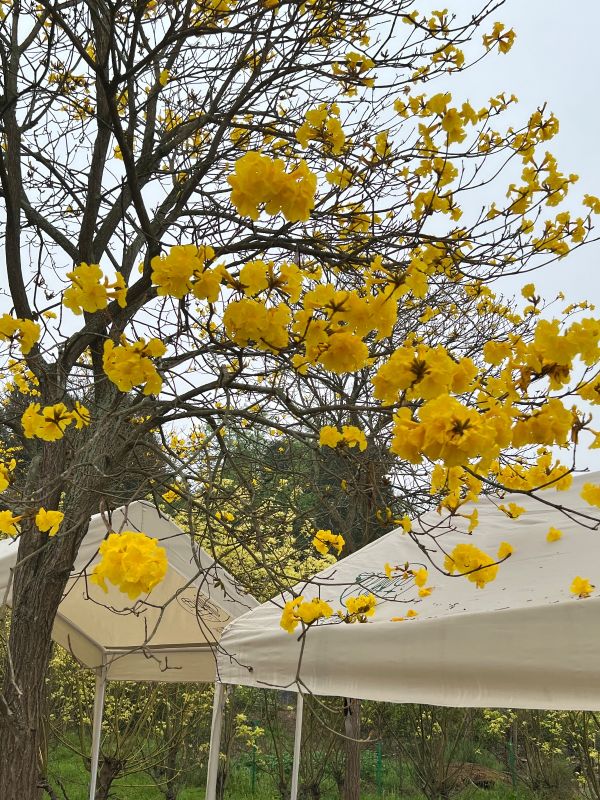 随着四季变化而更换风貌的树:春天枝条叶疏,清明节前后会开漂亮的黄花;夏天长叶结果荚;秋天枝叶繁盛,一片绿油油的景象;冬天枯枝落叶,呈现出凄凉之美,这就是黄花风铃木在春、夏、秋、冬所展现出不同的独特风采