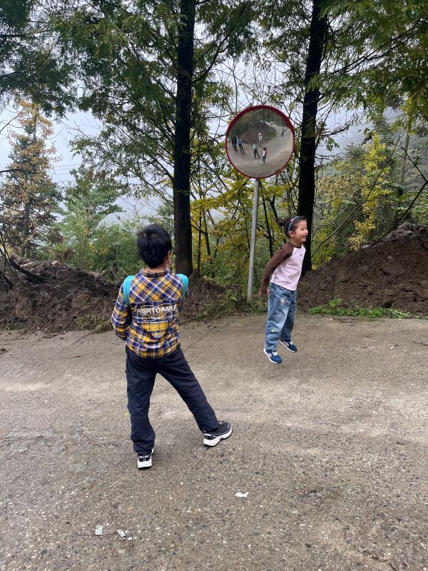 还好没下雨,阴天,但是从道观上山还是泥巴路。路程也很顺利,慢慢悠悠的,很休闲。领队很负责任,当地的猕猴桃确实很甜。