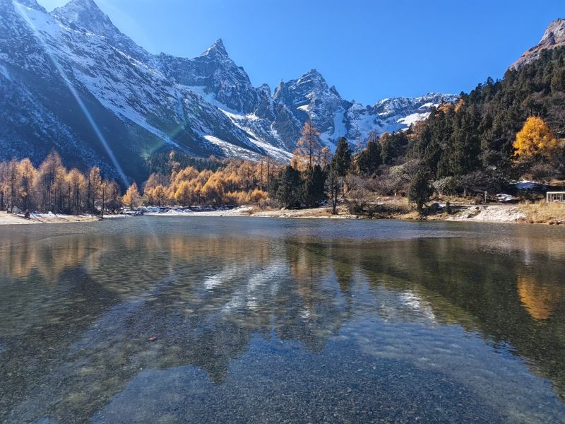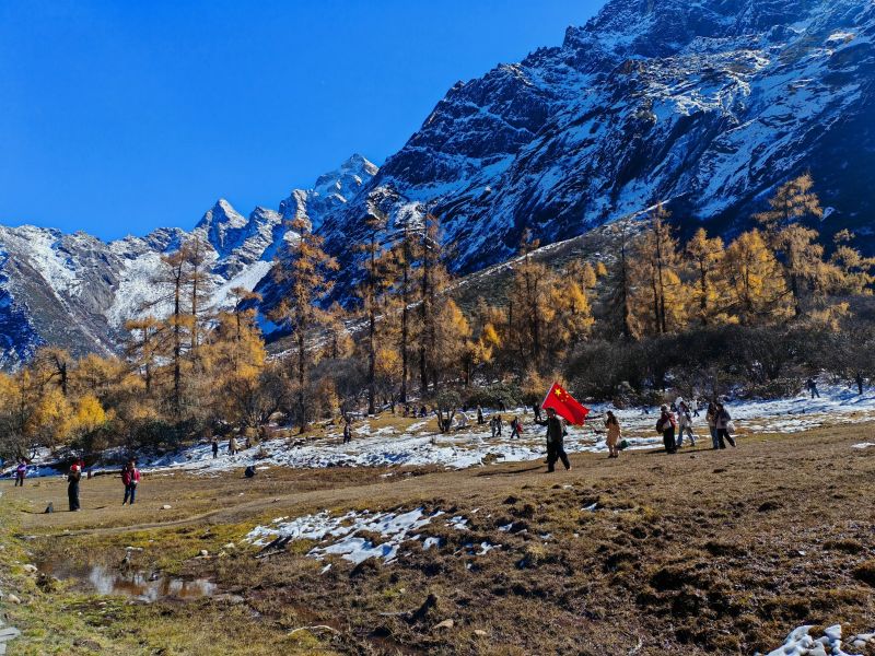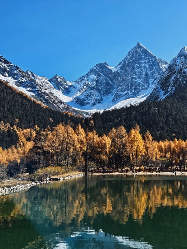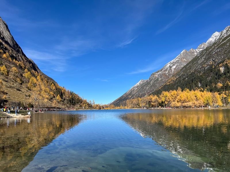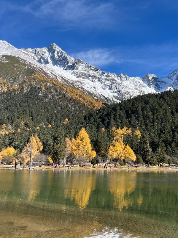 每年必去的毕棚沟,艳阳之下,雪山、彩林、瀑布、湖泊,太美了!领队晓月超级有耐心