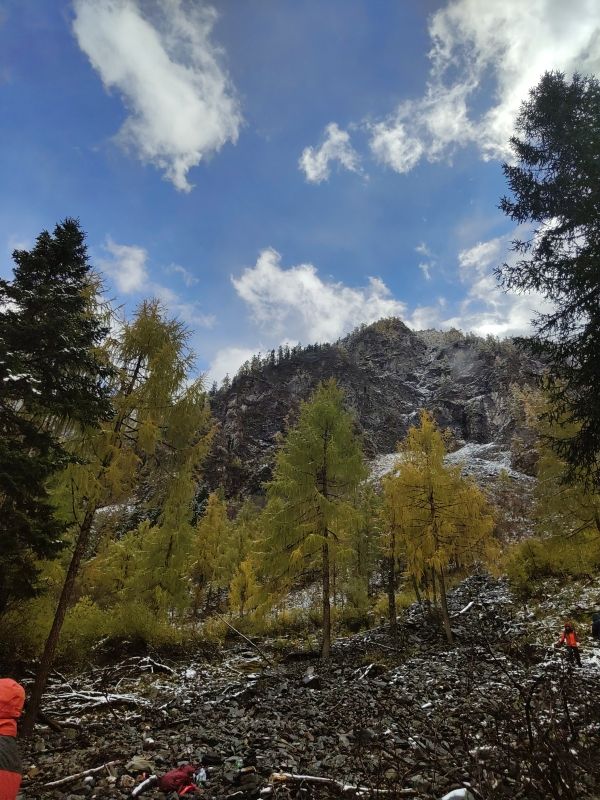 今天成都下了一天的雨,这种坏天气本来没抱什么期望的,去到虞美措这边天气却意外的好,甚至云层有几度被吹开露出了雪山,领队牛牛也是非常热心周到,在瀑布下面还抱大石头替我们在水里铺路,特别暖心。唯一的遗憾是未能一睹霸王山真容