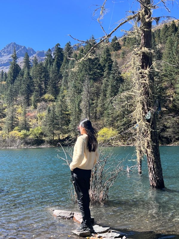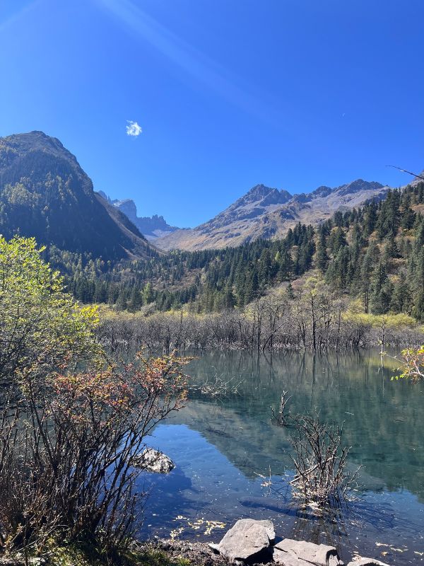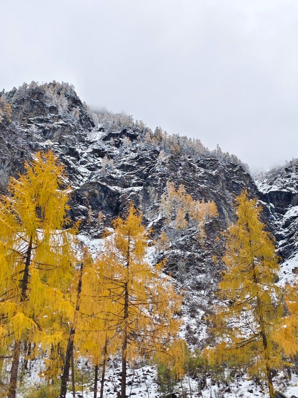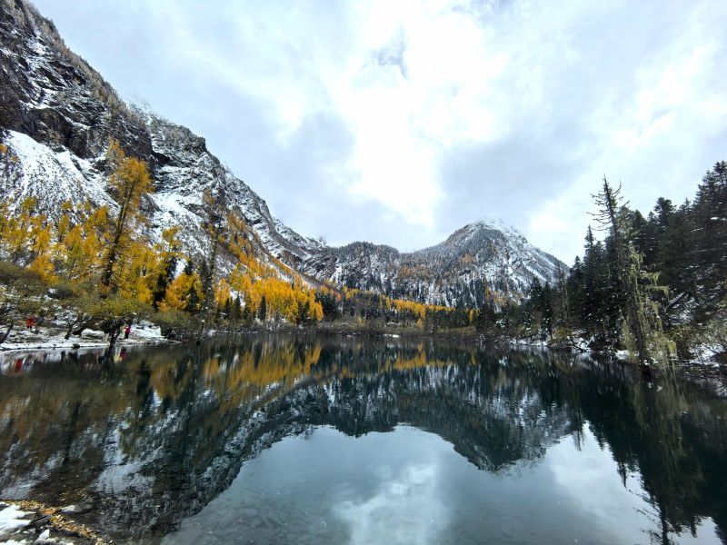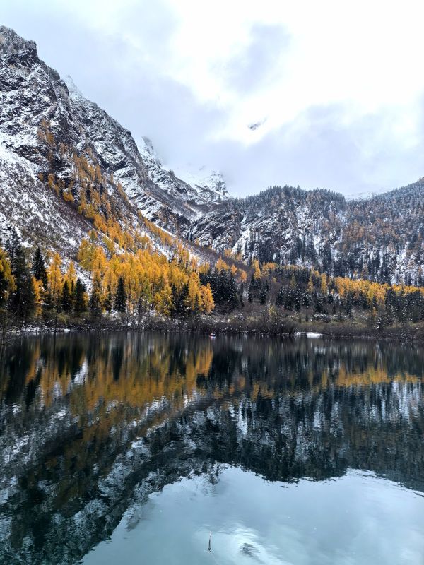 昨日,又一次和LU趣户外来到霸王山虞美措轻徒步,虞美措位于理县米亚罗核心景区。山脚处,彩林初现。到达海拔3000米处的湖泊处,起初薄雾缭绕,似披上神秘的面纱,但远处的景色极有层次。渐渐地,有些天晴,雪山、湖畔的彩林倒影在纯净的湖水中,仿佛水下也有另一个世界,静谧地不想让人打扰。雪地上,牛儿在快乐地嬉闹,红色的野果子晶莹剔透、针叶林在雪山的映衬下格外鲜艳,远处的小冈仁波齐闪耀着光芒。