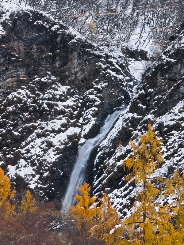 雪山、海子、彩林、瀑布相映成趣,不虚此行!霸王山也终露了一会真颜。领队野牛细致耐心安排行程,身先士卒带领向瀑布徒步,妥妥的安全感。