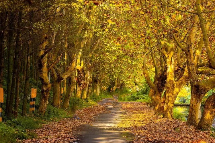 这条位于都江堰的梧桐大道,抬头望去一颗颗梧桐树像披上了一层金黄的外衣,如梦如画。步入其中,就仿佛进入了油画的世界。