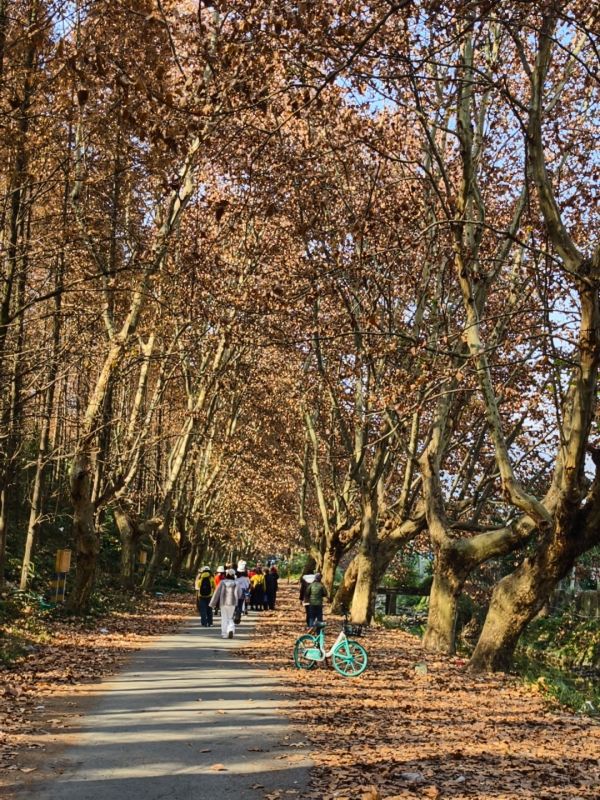 这条位于都江堰的梧桐大道,抬头望去一颗颗梧桐树像披上了一层金黄的外衣,如梦如画。步入其中,就仿佛进入了油画的世界。